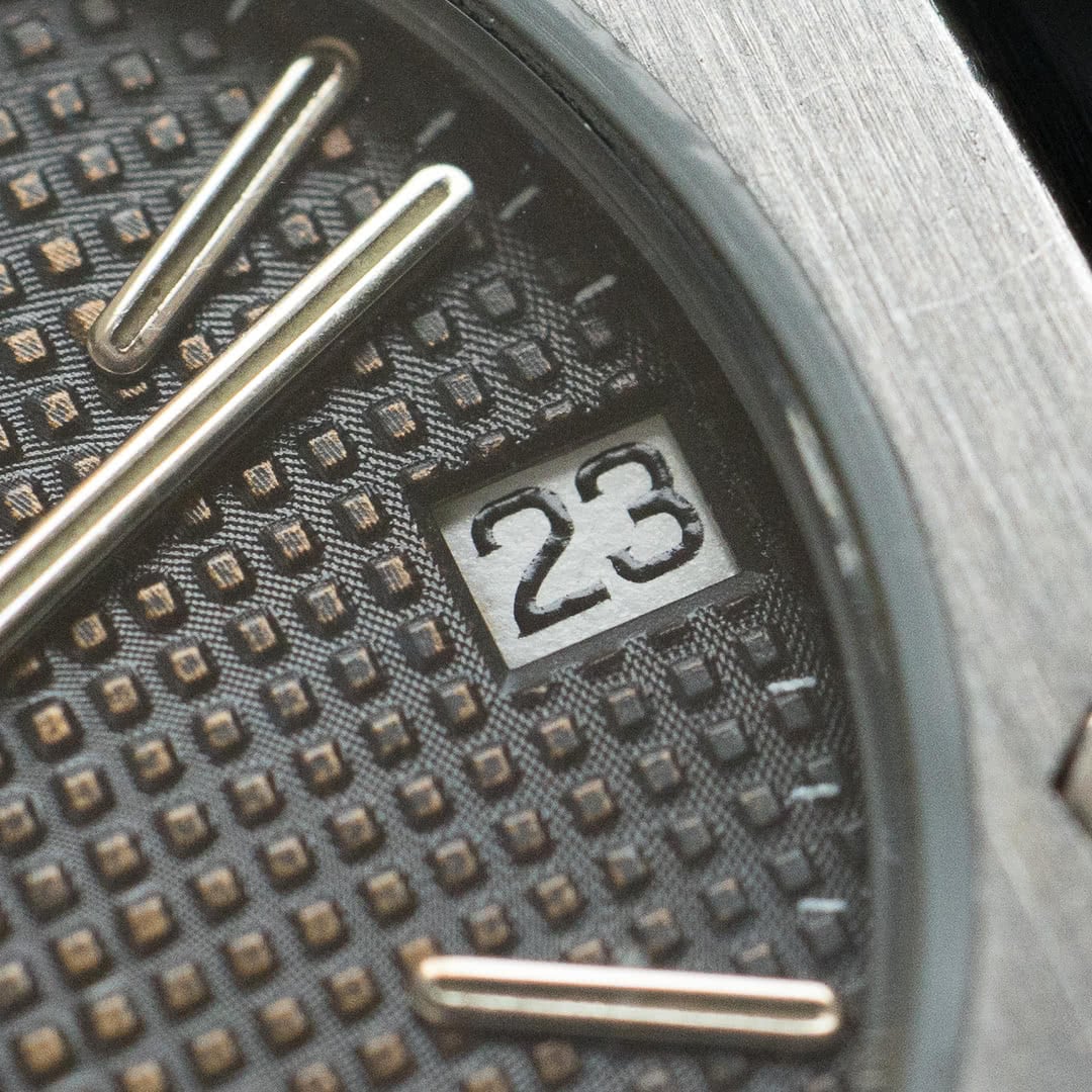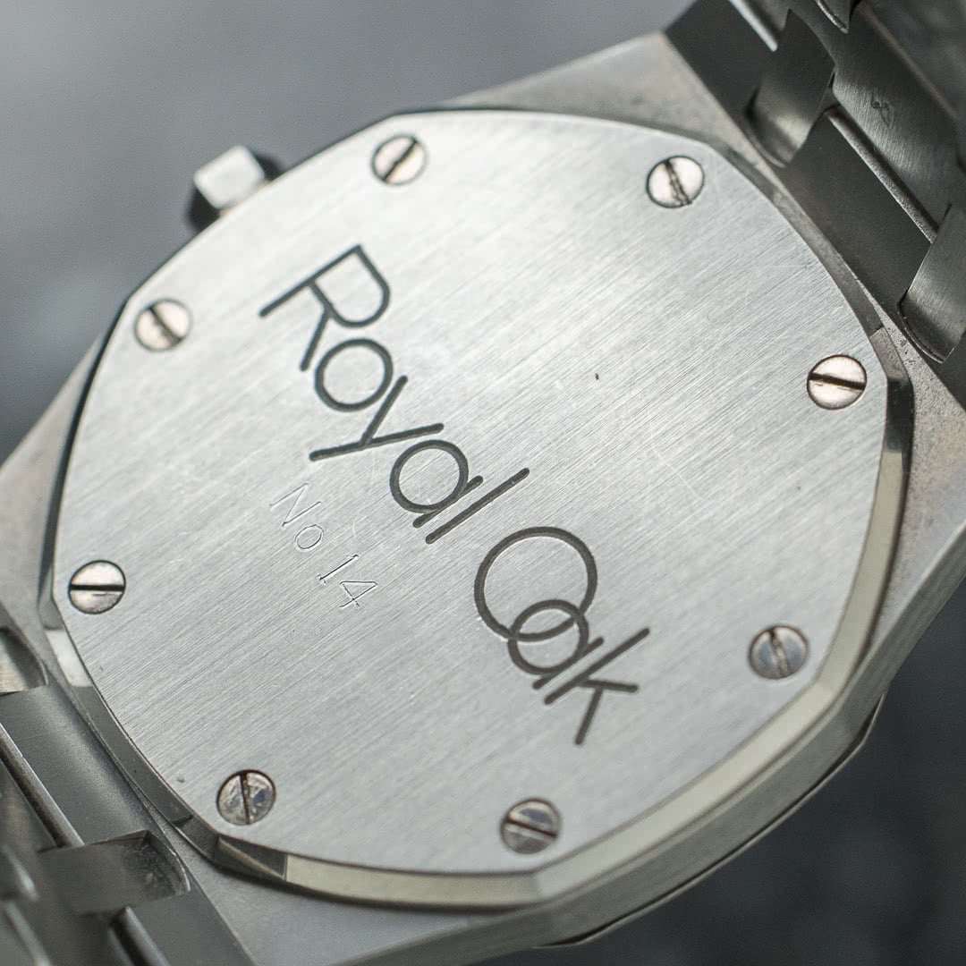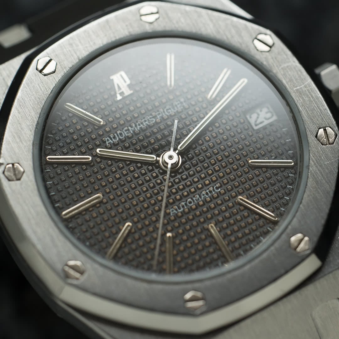 Designed in 1977 by Jacqueline Dimier, the Royal Oak reference 4100ST was the third Royal Oak produced in history, and the first ‘mid-size’ model, offering a smaller alternative to the reference 5402 which, with its 39 mm diameter, was considered a large watch for the time. It was in production for eight years, but were continuously sold until 2002. The 4100 is the largest series of all the so-called ‘mid-size’ Royal Oaks, with more than 8,400 units sold. In terms of design, purists will appreciate the ‘small font’ typography, as well as the proportions, which are an elegant mix between the first two references in history, the 5402 and the 8638. The 4100 also features a case back that separates from the case, a first at the time for the Royal Oak, which was still only designed in two parts.