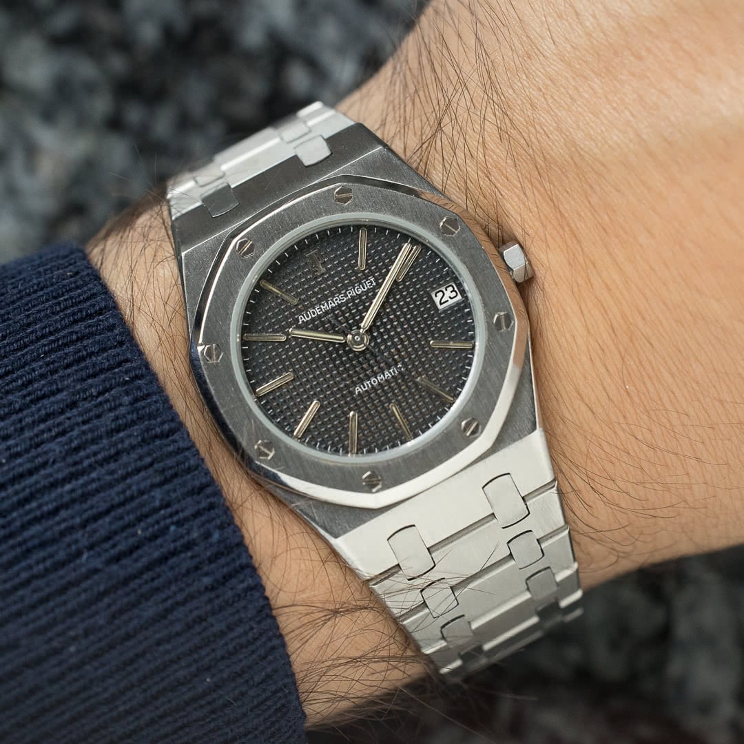 The one and only Royal Oak, Genta's design masterpiece. The reference 4100 (or 14100) is the Royal Oak with the biggest longevity of the ‘mid-size’ models, being the first reference to offer a three-part case (with a back that can be separated from the case). This reference 4100ST is the perfect example of what a collectible Royal Oak should look like, with its stunning dial that has tropicalised over time. It dates from around the 1980s and has been kept in very good condition.