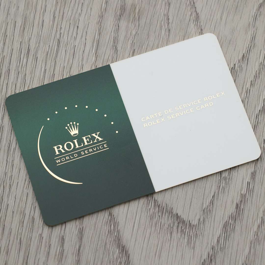 La montre est vendue sans boite ni papiers, mais avec la carte de service du Rolex Service Center. Nous fournissons une pochette de voyage Veritas.
