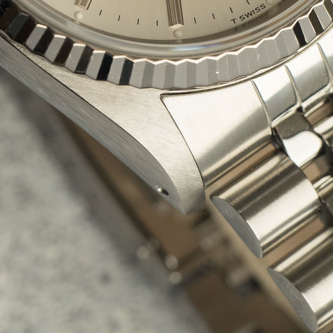 Reference 16234 is the first Datejust to have had sapphire instead of plexiglass, offering a little more resistance and a slightly more modern look than previous references. As is often the case with these neo-vintage Rolexes, the watch is a good mix, offering the strength and precision of a modern watch while retaining the aesthetics and wearability of the vintages.