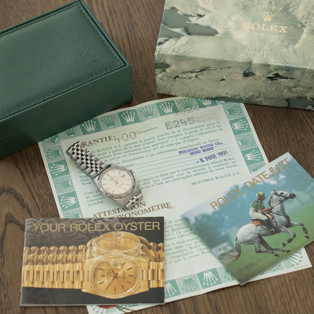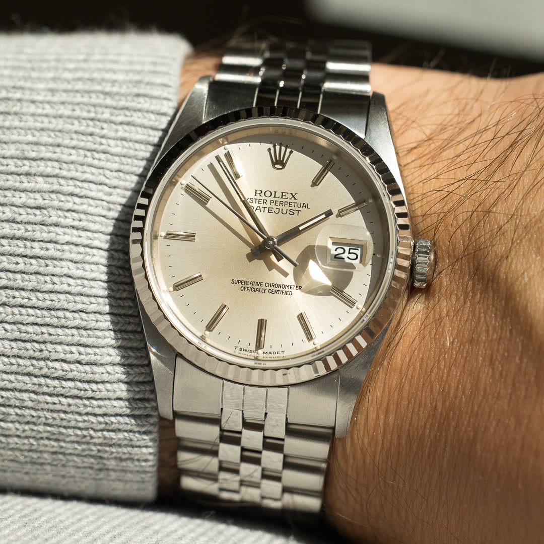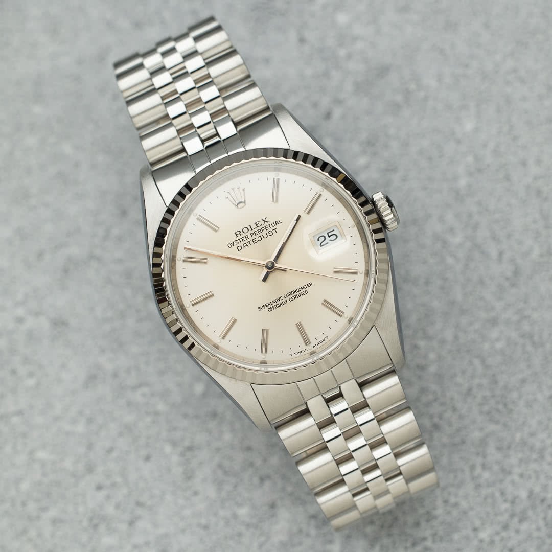 The timeless, classic and elegant Rolex Datejust in 36mm is a must-have in any collection and one of the best starting pieces. This specific piece was sold in 1991 in Hong Kong. With its stunning silver sunburst dial, it is the original classic and elegant Datejust. The case and bracelet are made of stainless steel, and the bezel of white gold.