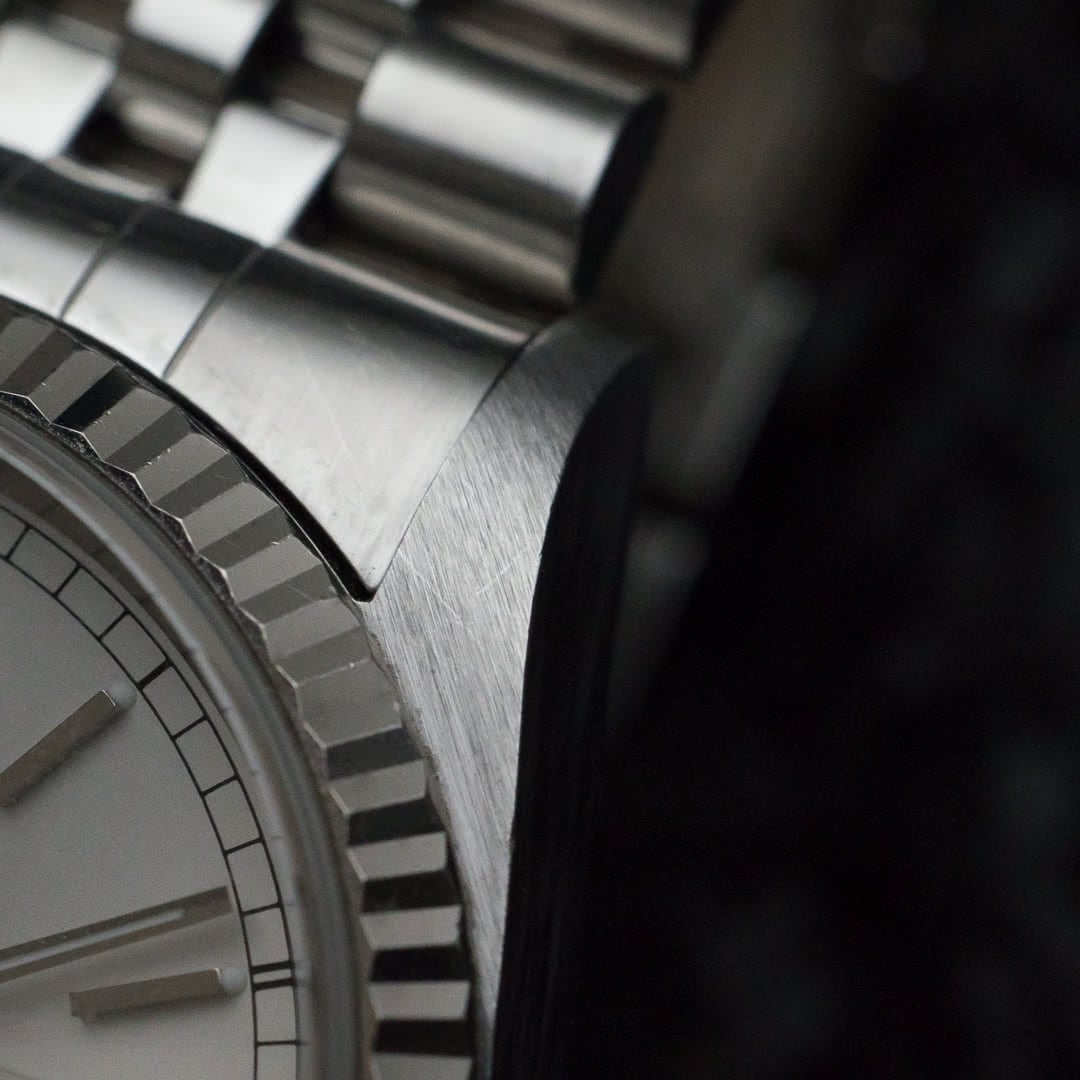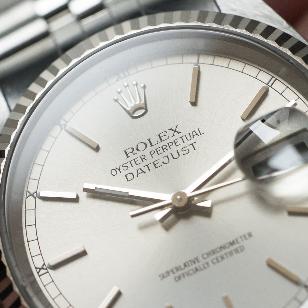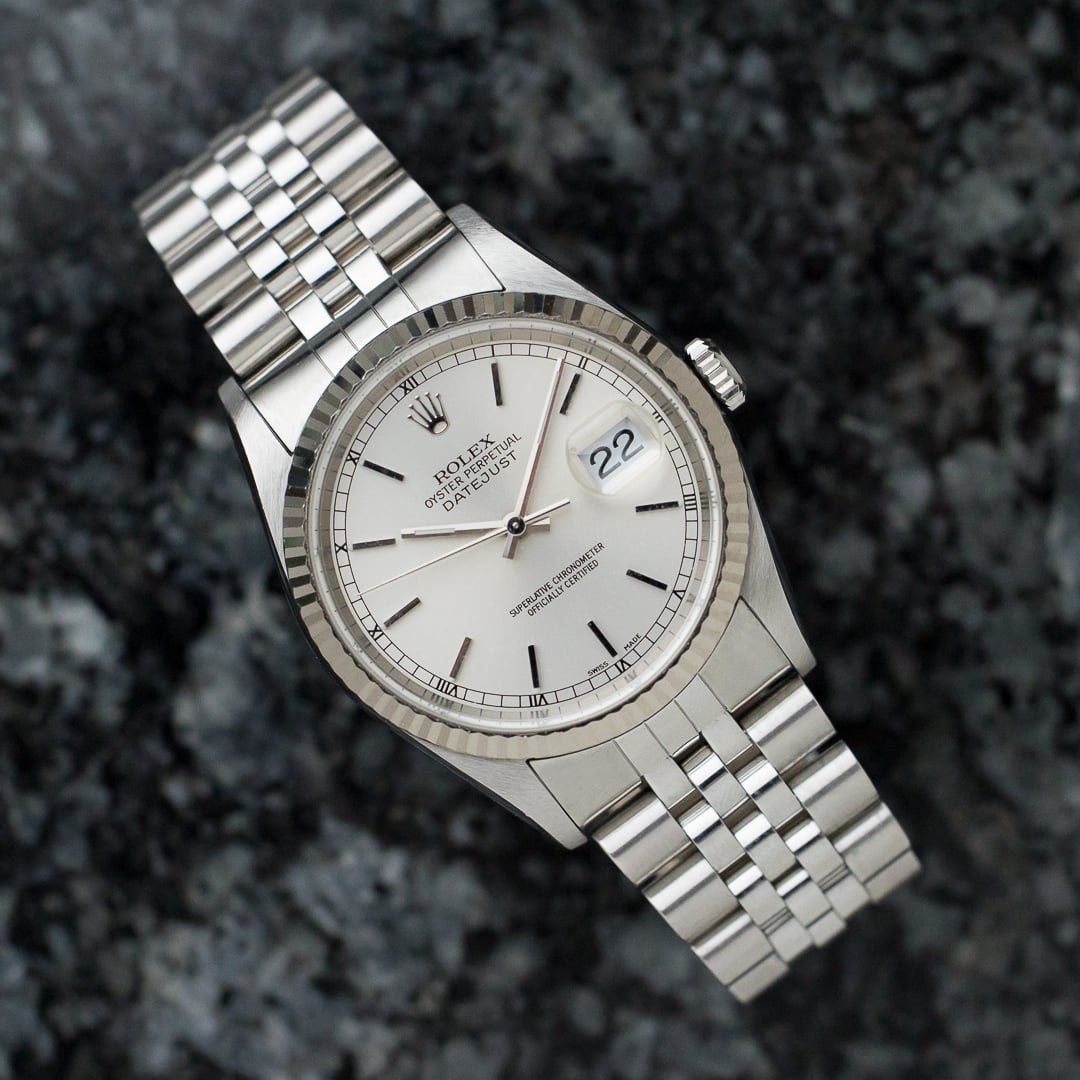 Reference 16234 is the first Datejust to have had sapphire instead of plexiglass, offering a little more resistance and a slightly more modern look than previous references. As is often the case with these neo-vintage Rolexes, the watch is a good mix, offering the strength and precision of a modern watch while retaining the aesthetics and wearability of the vintages.