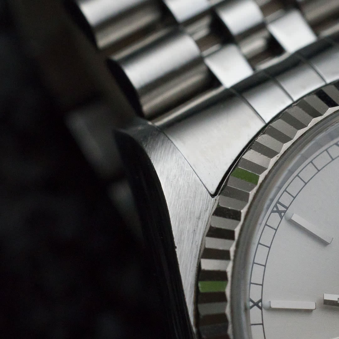 This particular piece, with its silver dial, fluted white gold bezel and jubilee bracelet, remains probably the best-known and most sought-after version, thanks in no small part to its versatility. The fascinating dial varies from metallic silver to a stunning champagne colour depending on the light, giving it a lively, dynamic appearance on the wrist. The indexes and hands are in luminova, which offers better readability in the dark.