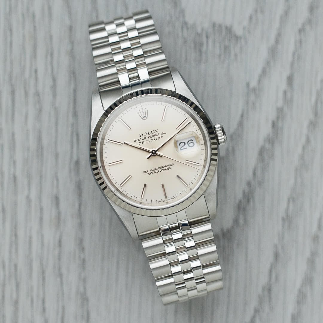 Dans la riche et longue histoire de Rolex, peu de modèles peuvent se targuer d'être aussi importants que la Datejust. Né en 1945, le modèle a connu de nombreuses variations et de combinaisons de boîtiers, de bracelets et de cadrans. La référence 16234 est la première Datejust a avoir eu un sapphire à la place du plexiglass, offrant un peu plus de résistance et un aspect légèrement plus moderne que les références précédentes. Comme souvent sur ces Rolex néo-vintage, la montre est un bon mélange offrant la résistance et la précision d’une montre moderne tout en gardant l’aspect esthétique et la sensation au porté des vintages.