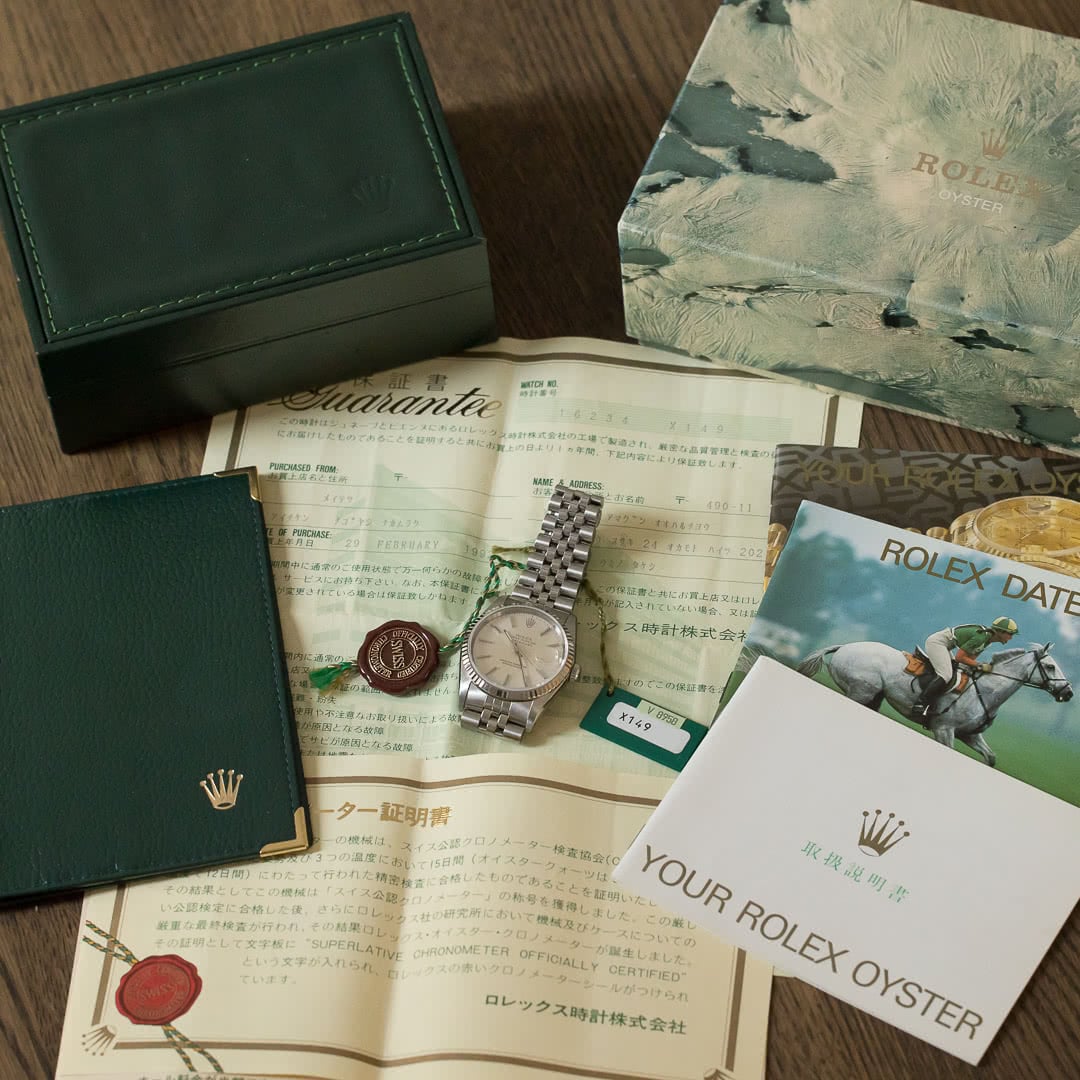 La Rolex Datejust 36 mm, intemporelle, classique et élégante, est un must dans toute collection digne de ce nom. Cette pièce spécifique a été vendue en 1992, au Japan. Son superbe cadran argent apporte du dynamisme à cette splendide pièce qui est dans un superbe état. Le boîtier et le bracelet sont en acier, et la lunette en or blanc.