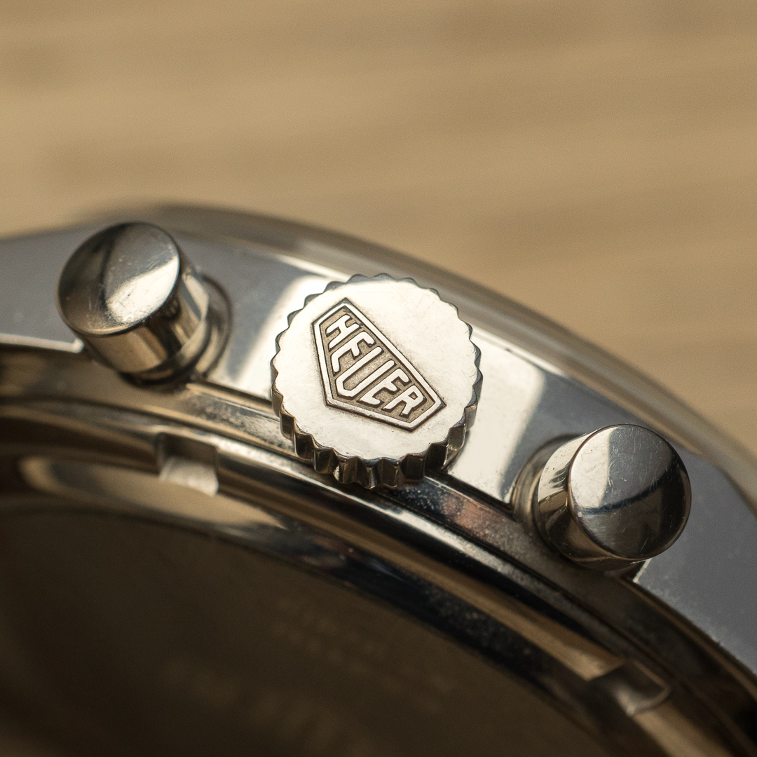 This specific piece has been kept in a stunning condition over time. Indeed, the dial has no scratches or marks, enhanced by a lovely cream tritium on the indexes and hands. The case has kept its original angles and dimensions and shows no dent, only some light manipulation scratches here and there, which is the norm on a close-to-30 years old watch! The black bracelet is the original one and comes with the original heuer buckle.
